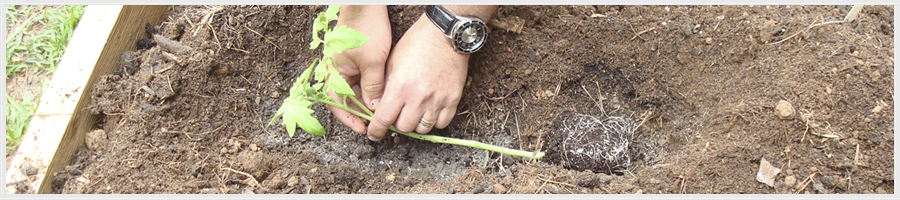 For the tomato demonstration, we dug a hole as deep as the first “true leaves”. The lower leaves of the plant were removed and the tomato was planted much deeper than it was in the 4″ pot. Tomato stems can readily product roots so planting deeply is a great way to get a tomato established quickly. A second demonstration showed that tall transplants can be buried in a trough where the plant is placed in a semi-horizontal position to allow quicker deep root development.